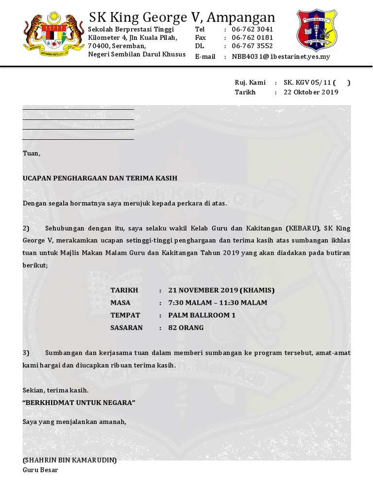 Download Contoh Surat Rasmi Ucapan Terima Kasih Rasmi H from contohsuratlengkap.org Surat ucapan terima kasih atas sumbangan. We did not find results for: Maybe you would like to learn more about one of these? Check spelling or type a new query.
